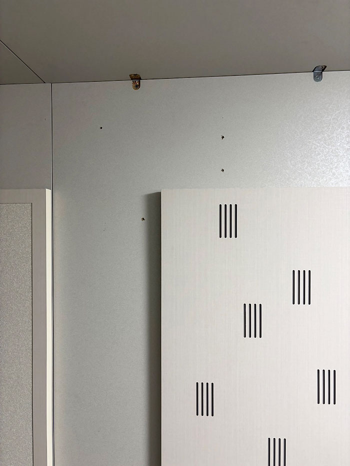 壁:遮音壁パネル 内外装仕上げ:強化化粧紙(パールホワイト色)