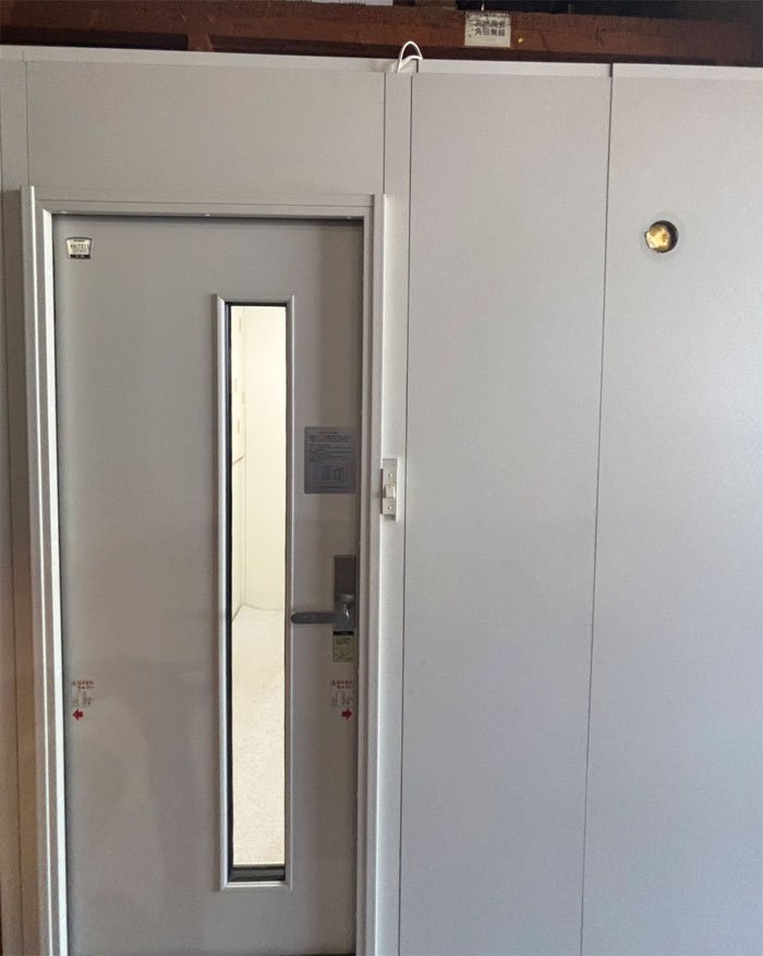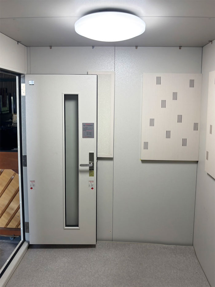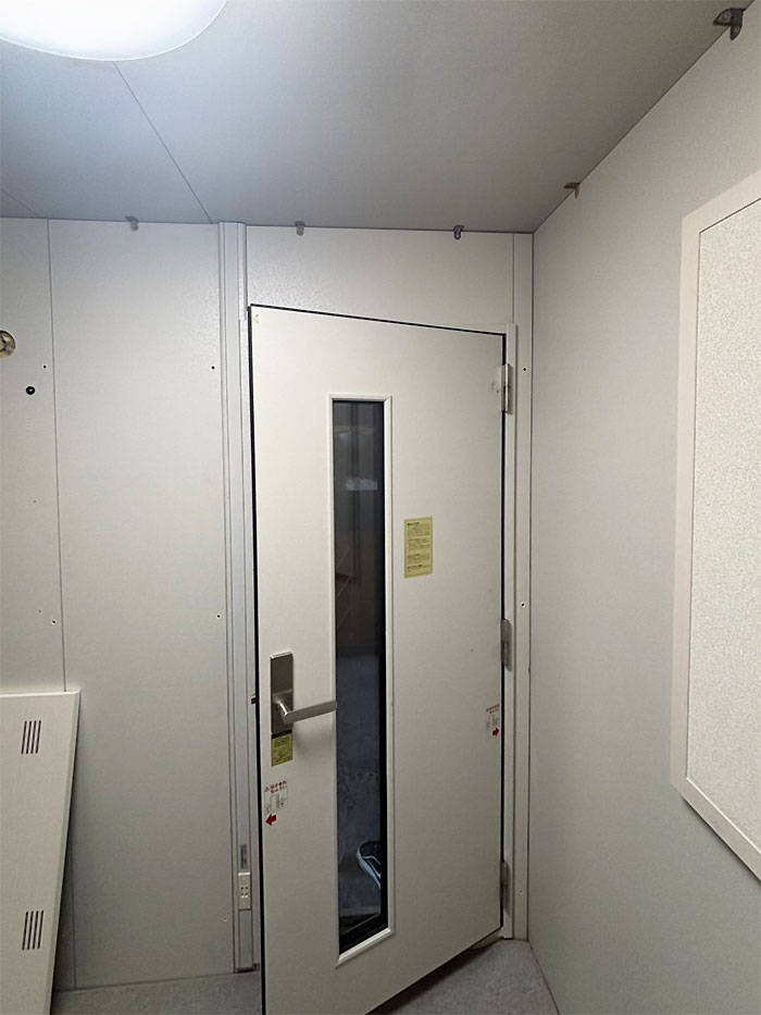 ドア:木製防音ドア(透明ガラス窓付き)・表面:強化化粧紙仕上げ